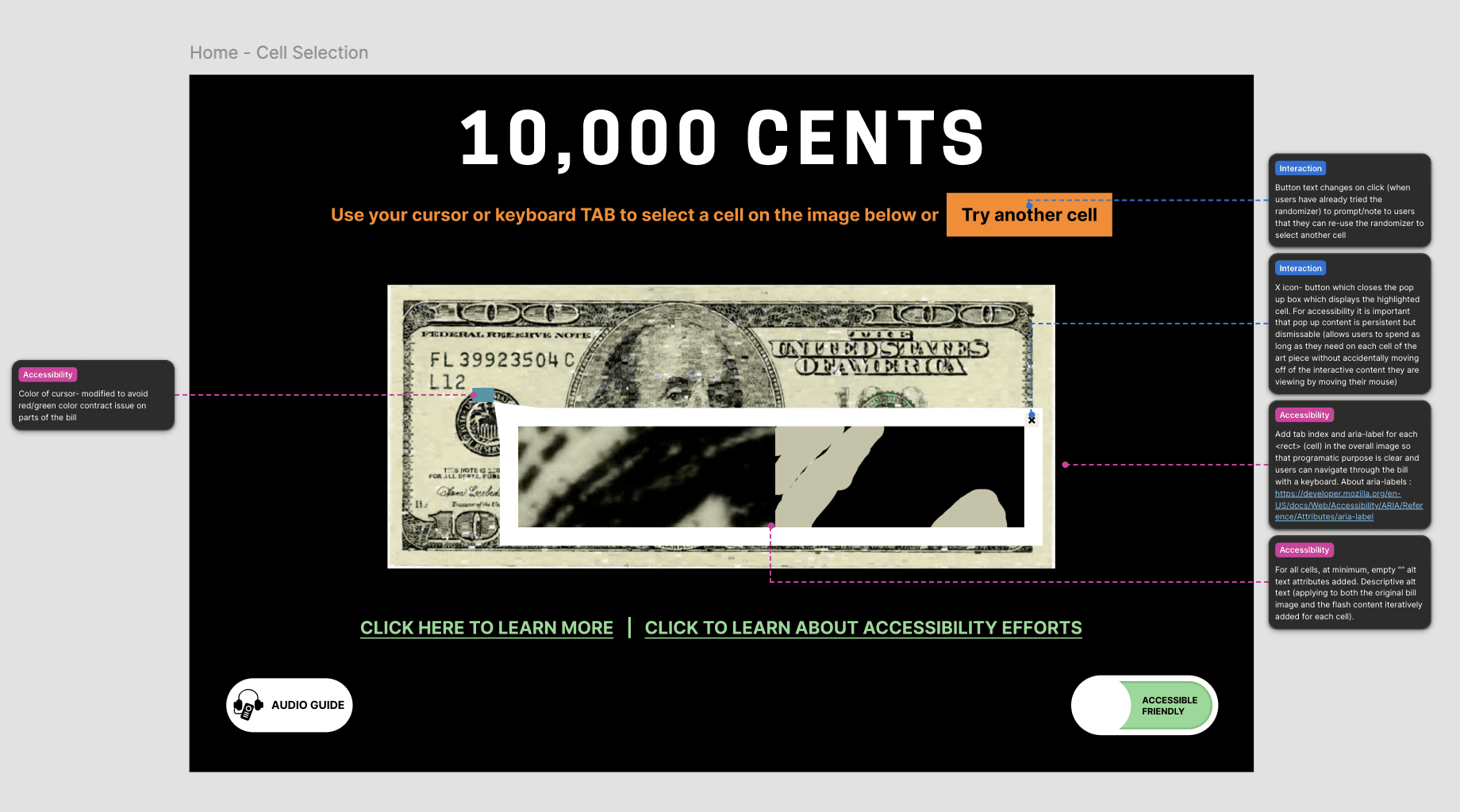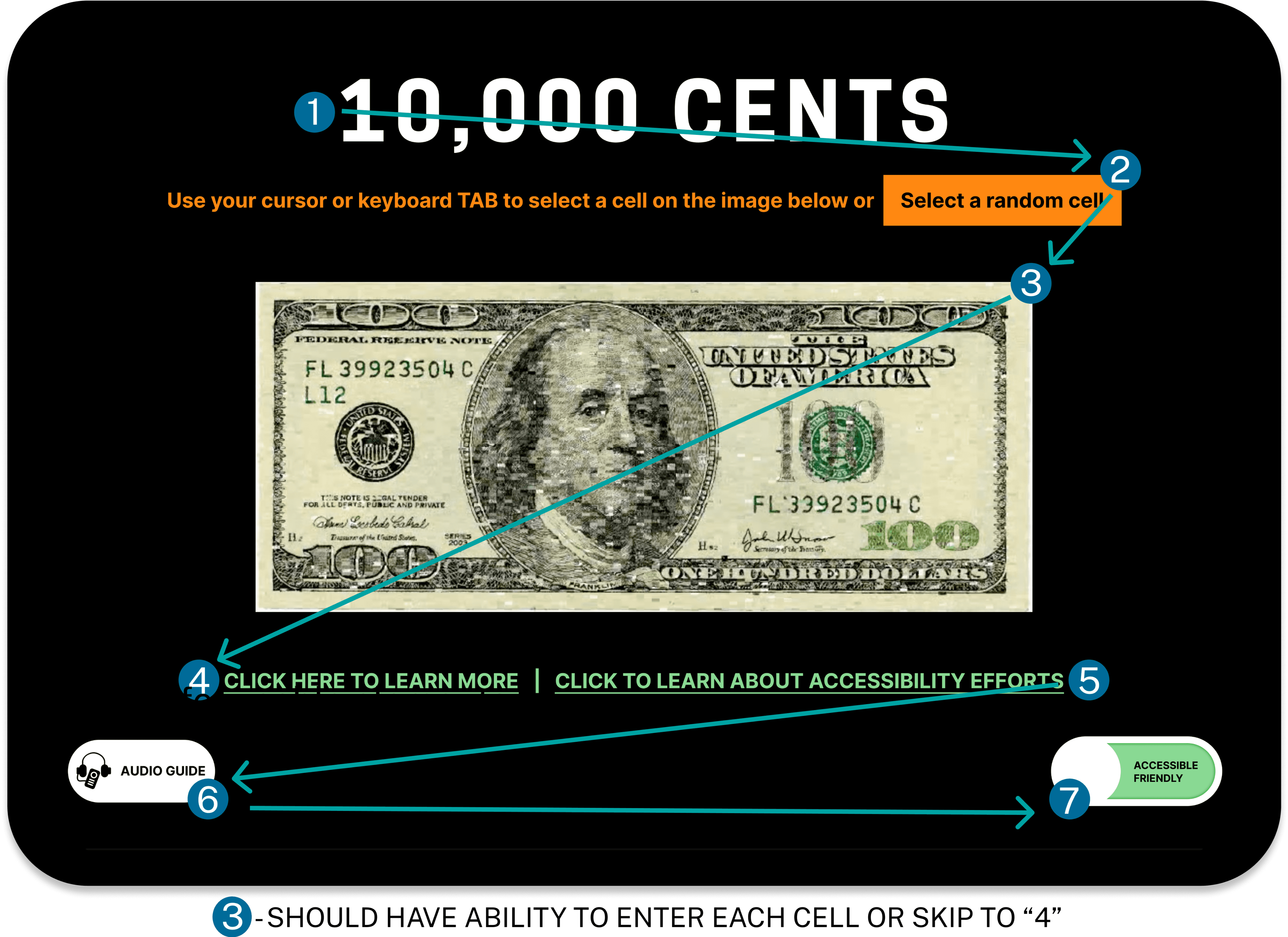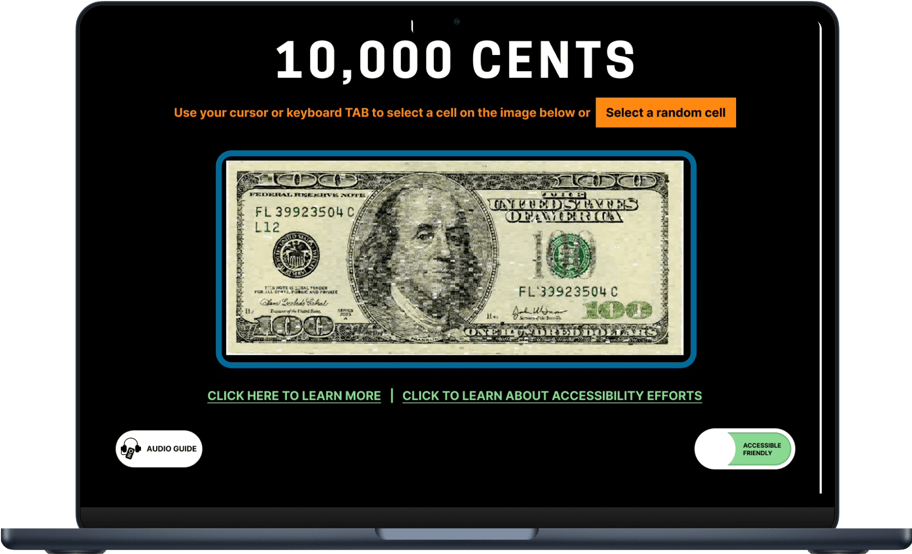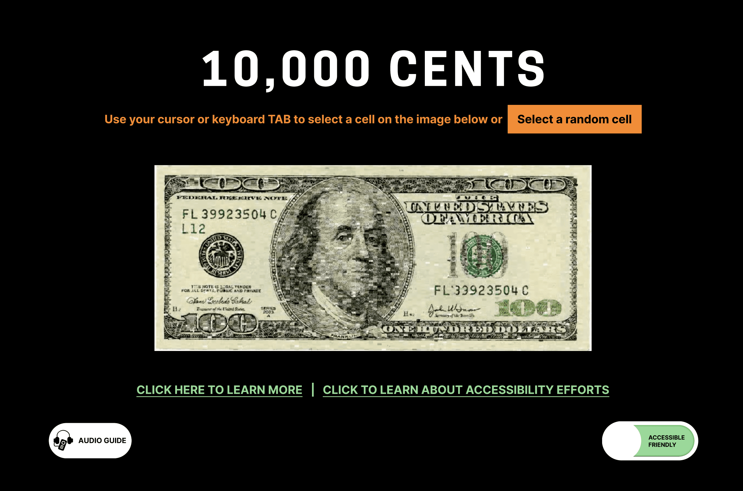 The goal was to redesign an accessible version of the 10,000 Cents project that enables non-visual users to engage meaningfully with its content, while preserving the artistic intent and integrity of the original work.
