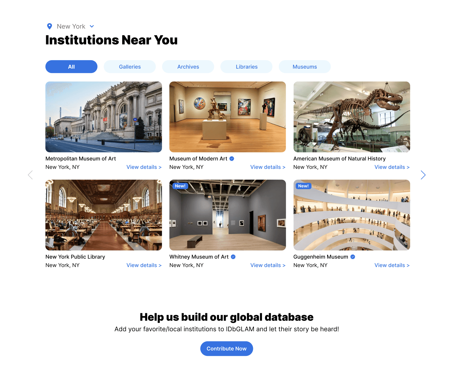 To simplify how visitors explore and contribute to the GLAM database by turning a dense, text-heavy system into a clear, structured experience that supports discovery and community participation.