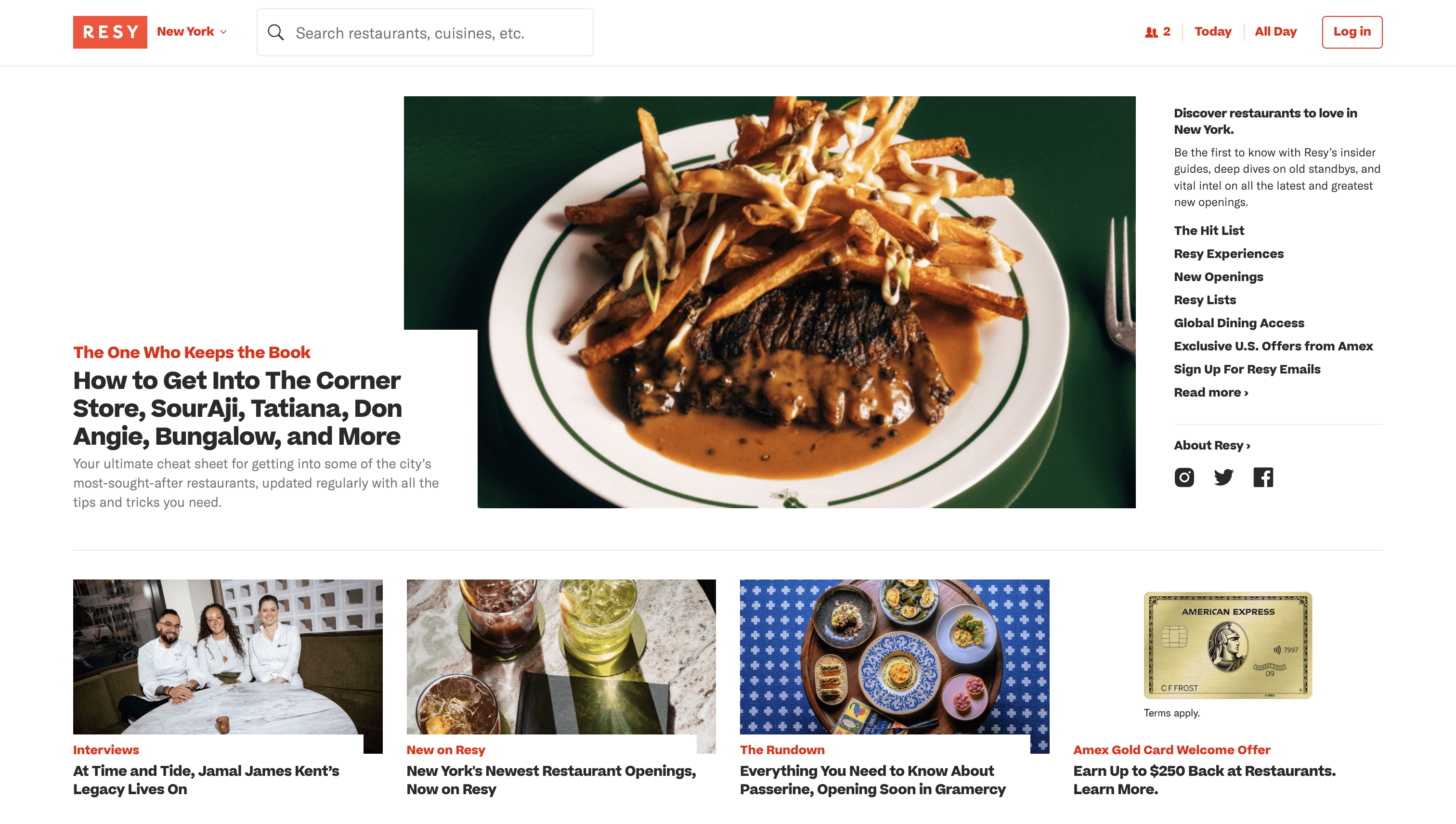 Most of the homepage is occupied articles/blog posts, rather than restaurants available for booking.