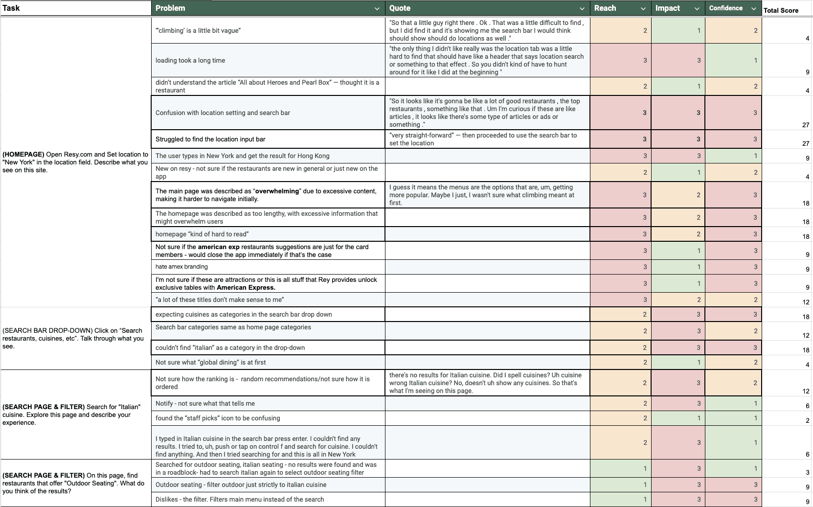 where - Reach is the number of people impacted, Impact is how much it will affect those people, Confidence is the certainty of your estimates, Effort is the resources needed (was not considered for this study)