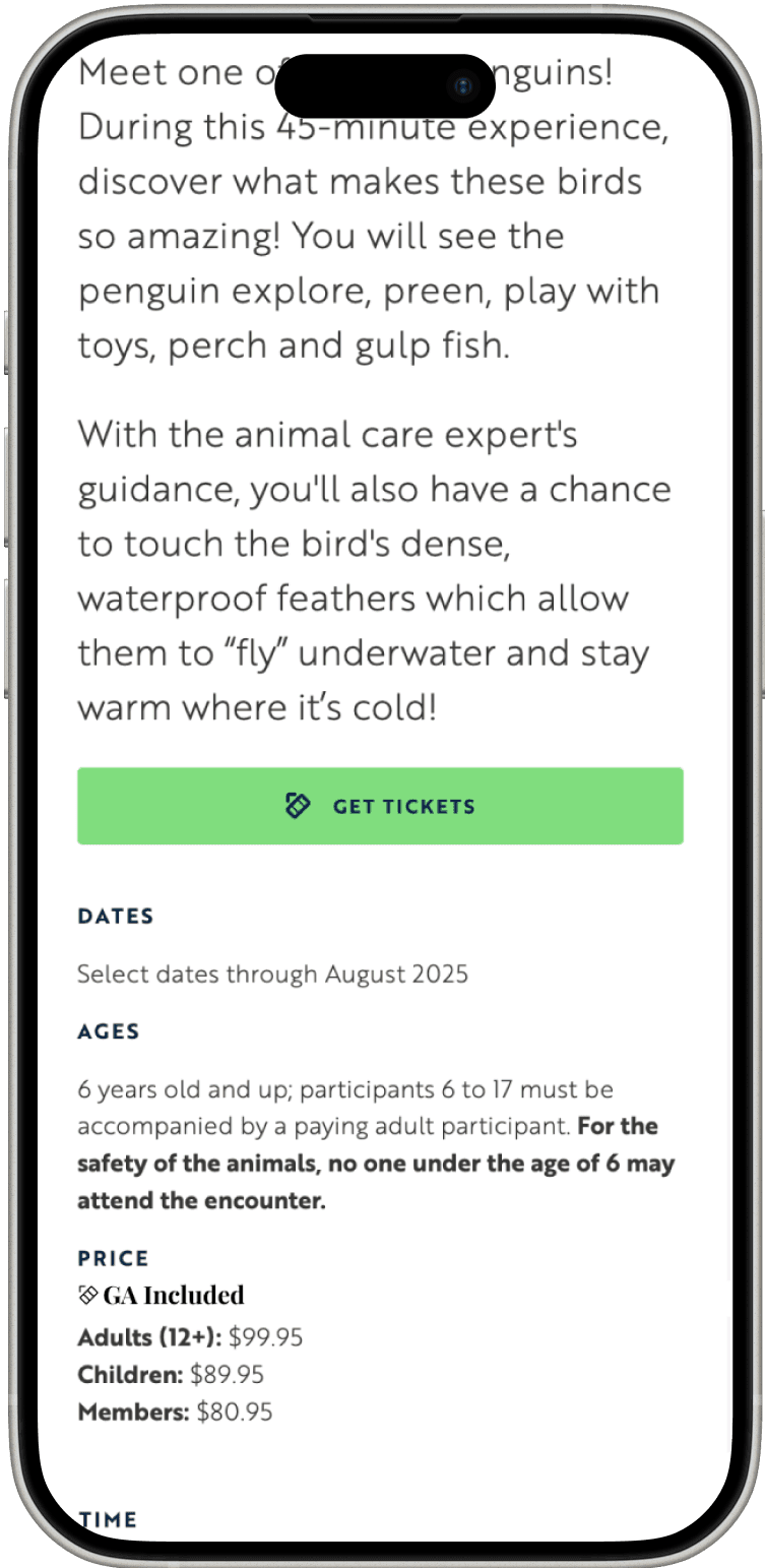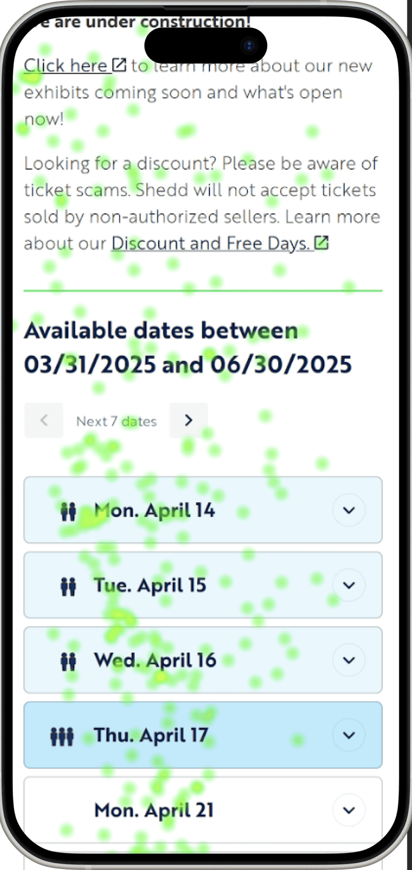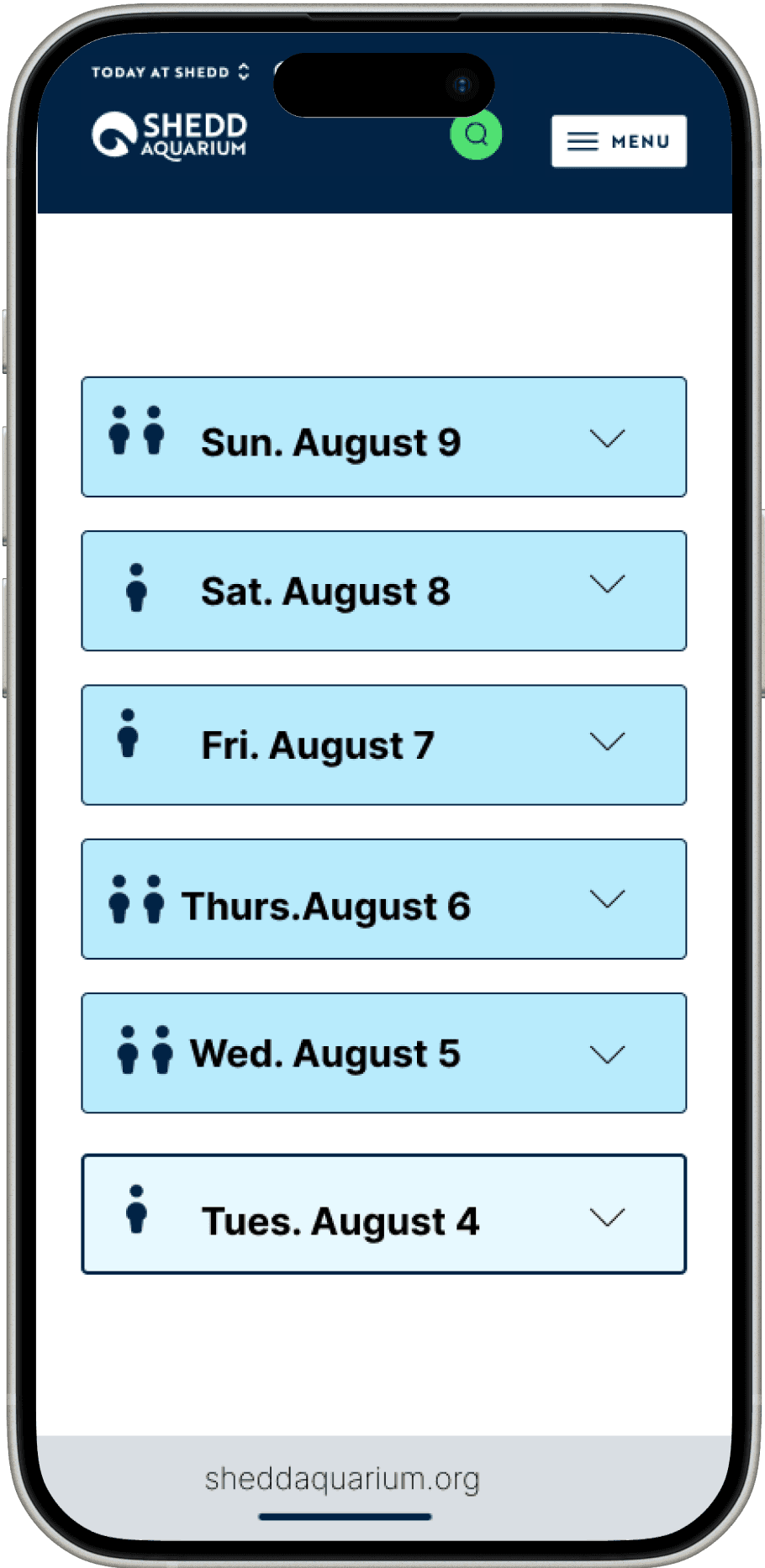 The goal was to optimize the 'Programs & Events' ticketing flow on Shedd Aquarium’s website, reducing user confusion, enhancing mobile usability, and increasing successful ticket purchases for 1.2M+ annual visitors.