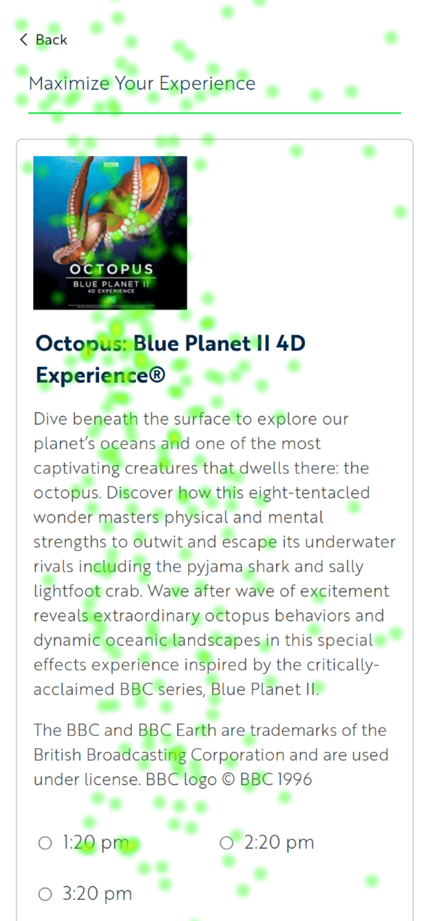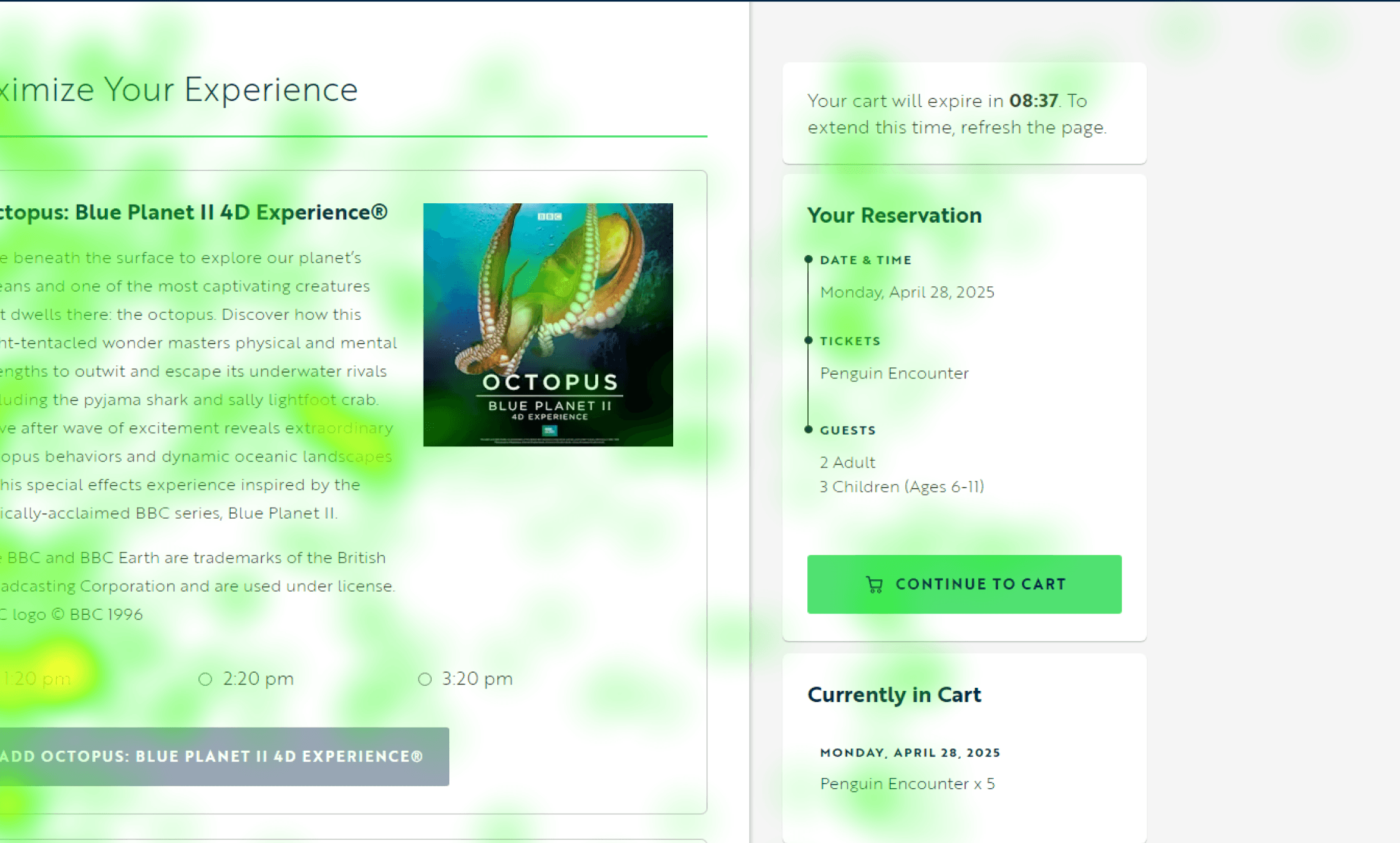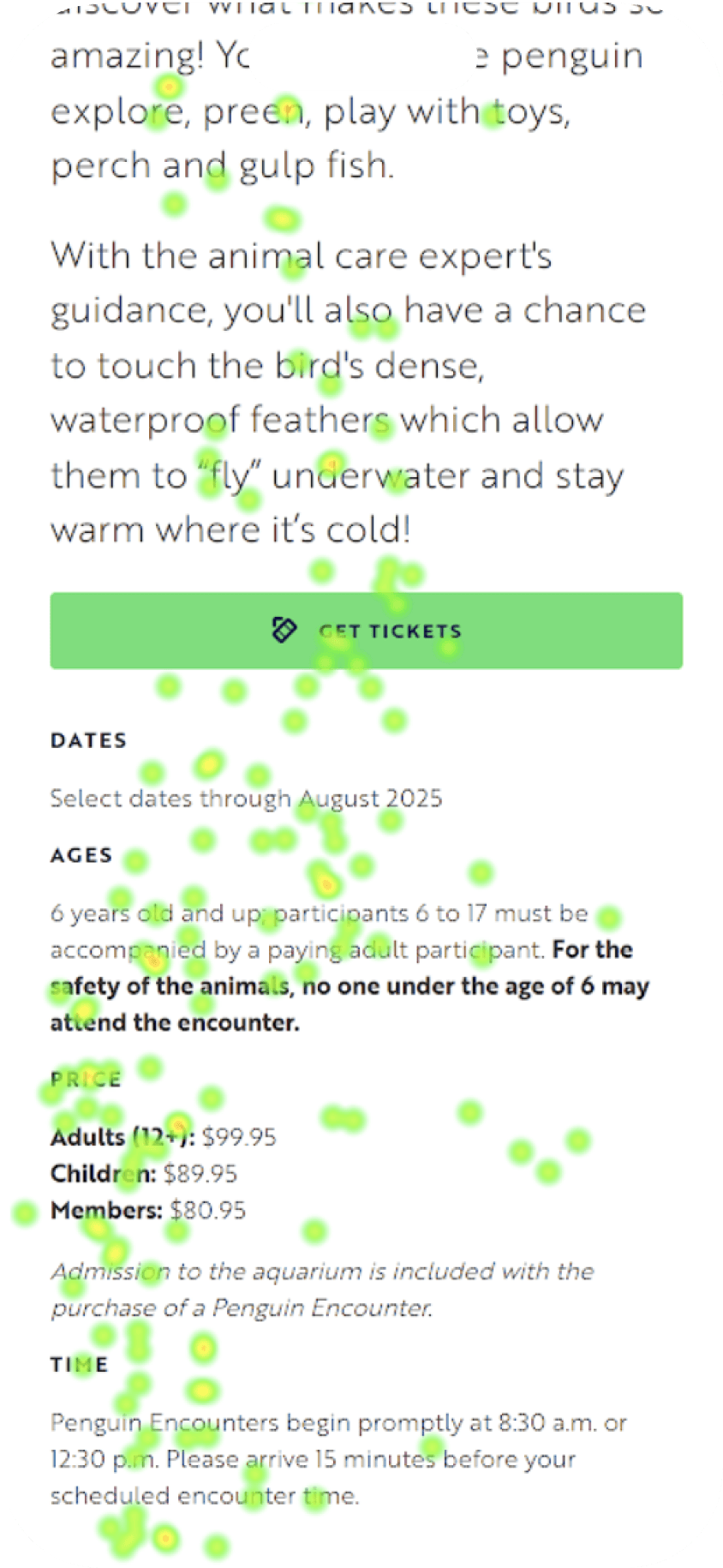 Our recommendations such as clearer navigation, improved pricing clarity, and reinforced messaging were driven by both data and user feedback. The project demonstrated that combining objective metrics with user insights leads to actionable design solutions, which Shedd Aquarium valued for its long-term impact.